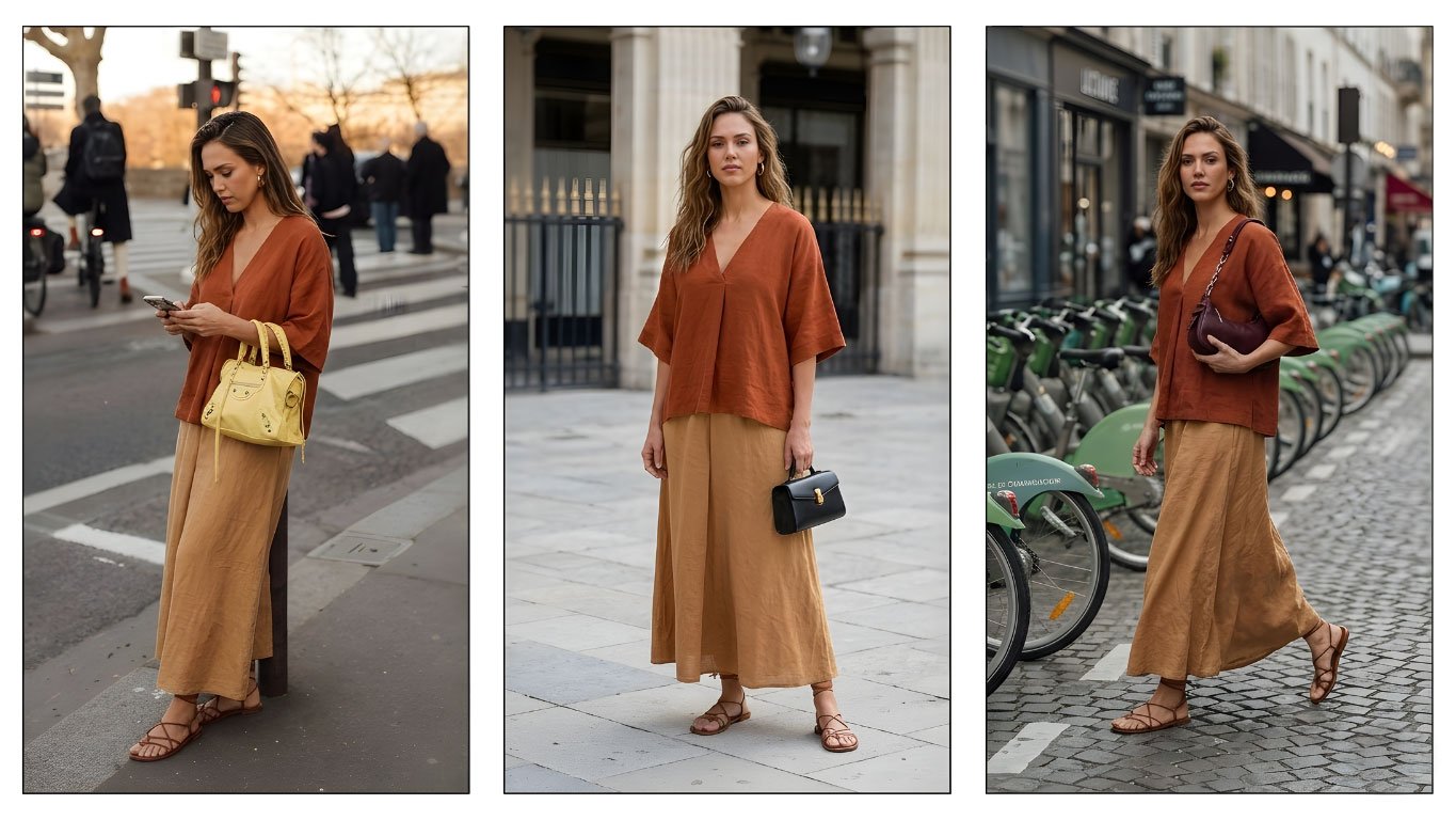 If your Pinterest saves have been filling up with sandy textures and rust-colored linen sets, you’re already ahead of the curve on this year’s seasonal fashion direction. The combination of burnt sienna and honey-gold tones mirrors the golden hour itself, warm, luminous, and completely magnetic. These are the pieces worth building your whole summer around.